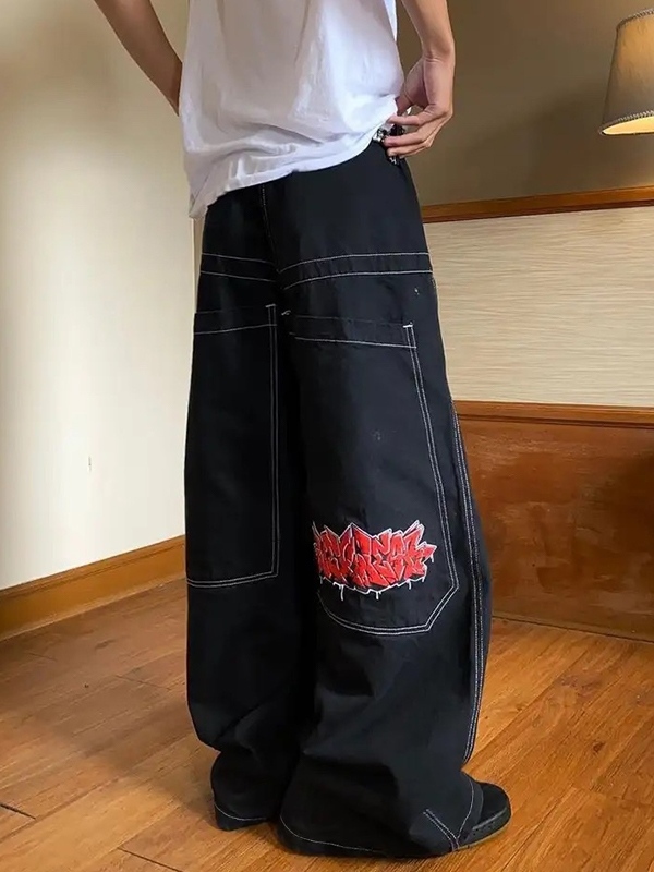 Men’s Hip Pop Graphic Embroidery Loose Jeans
