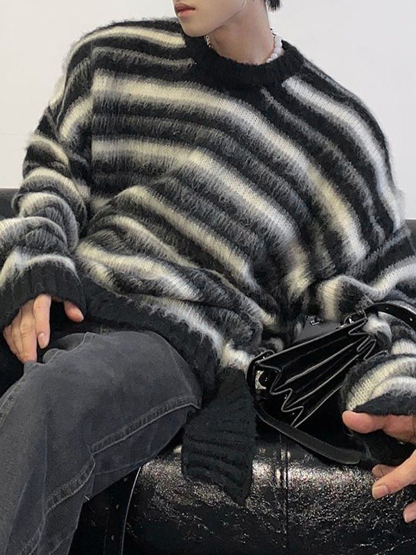 Men’s Contrast Striped Fuzzy Knit Sweater