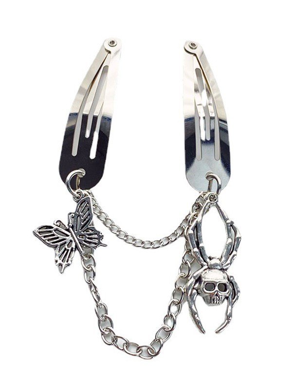 Skull Butterfly Charm Snap Hair Clip