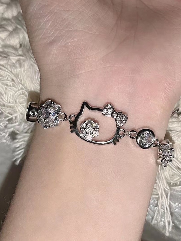 Silver Rhinestone Cat Bracelet