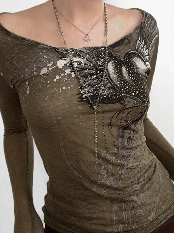 Splash Ink Rhinestone Print Long Sleeve Tee