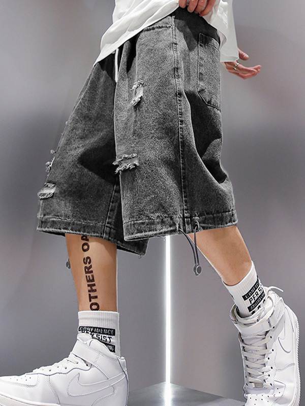 Men’s Wash Distressed Skate Denim Shorts