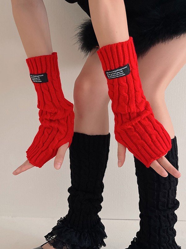 Thumbhole Cable Knit Arm Warmer Gloves