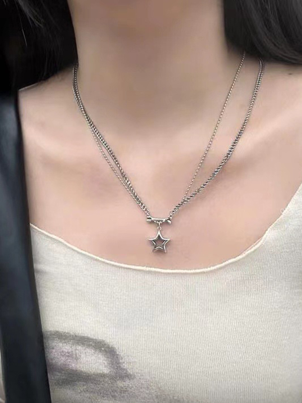 Double Layered Cutout Star Bone Charm Necklace