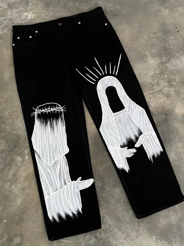 Men’s Street Water Ripple Print Loose Jeans