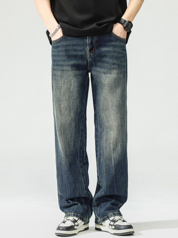 Men’s All-Match Slimming Wide Legs Slightly Flared Wash Loose Jeans