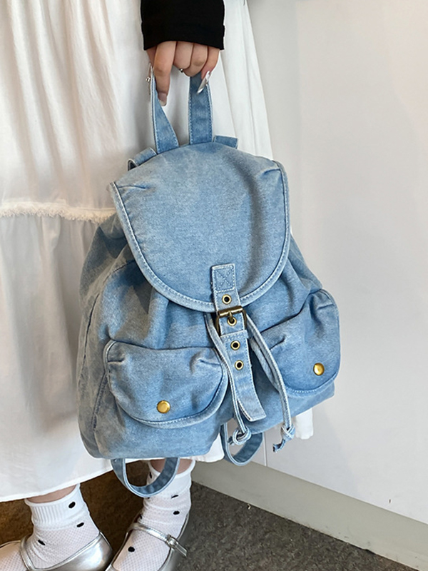 Vintage Wash Denim Casual Mini Backpack