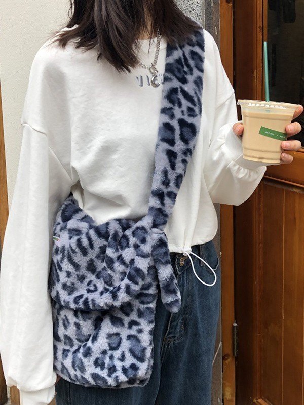 Leopard Print Fuzzy Crossbody Bag