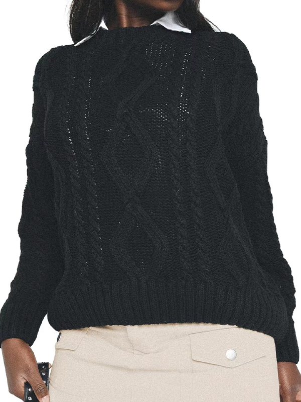 Solid Crew Neck Cable Knit Sweater