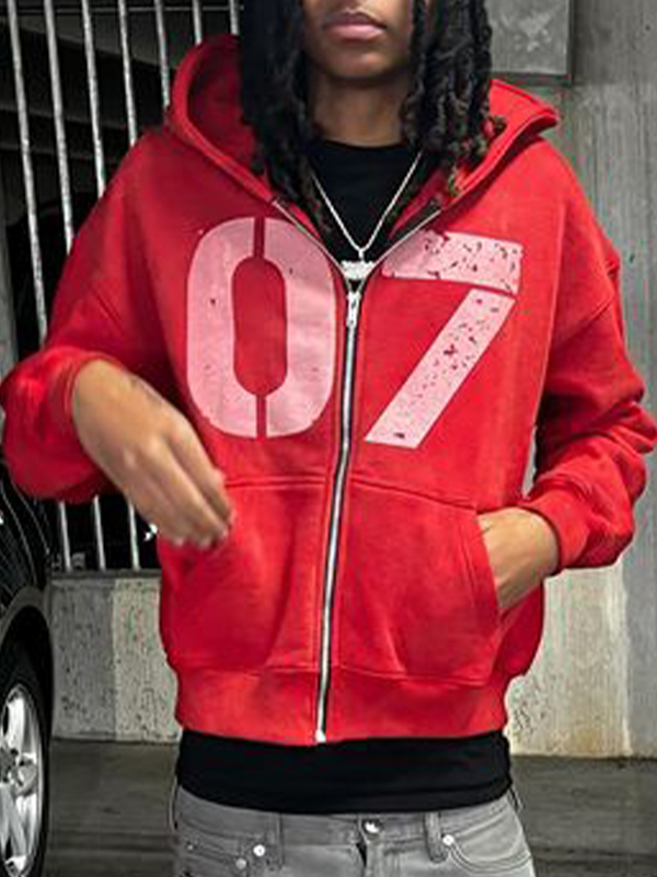 Men’s Letter Skull Graphic Zip Up Hoodie