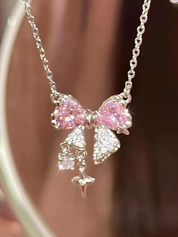 Bow Pendant Rhinestone Necklace