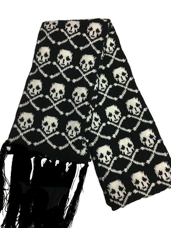 Skull Jacquard Fringed Knitted Scarf