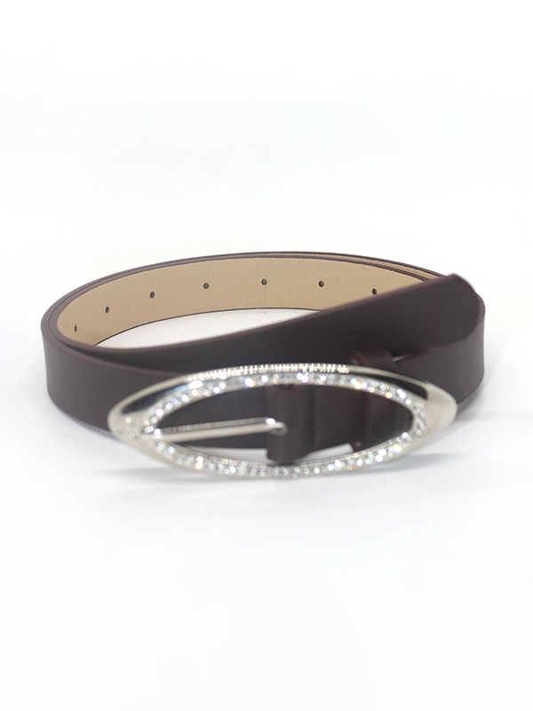 Hollow Out Oval Glittering Rhinestone Buckle Belt