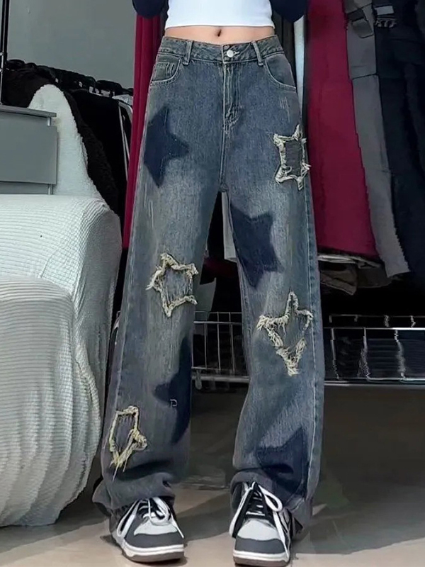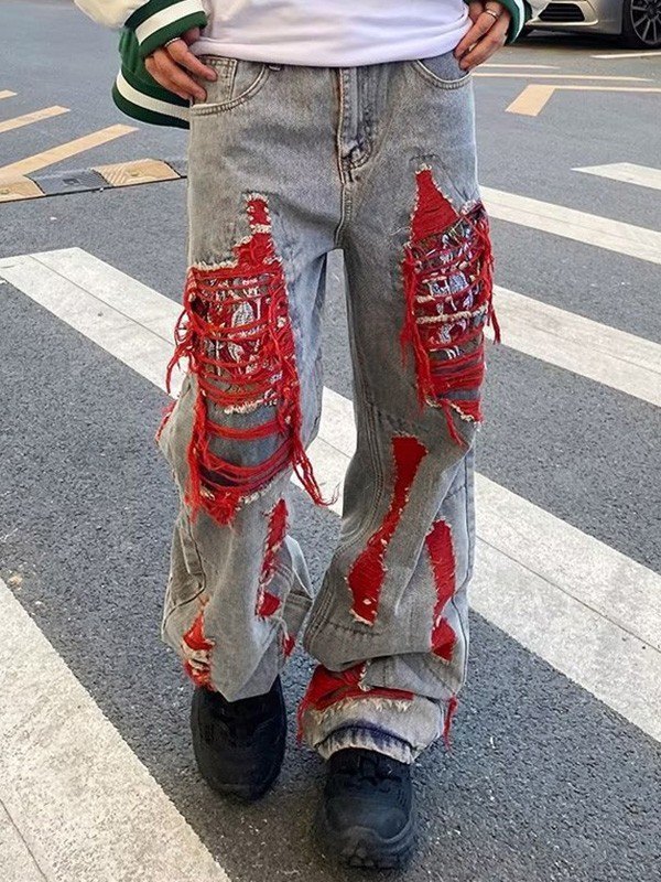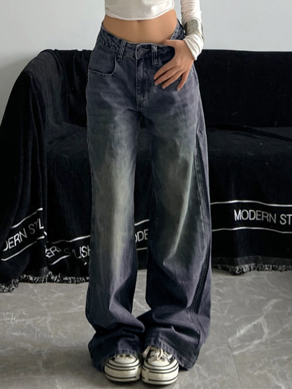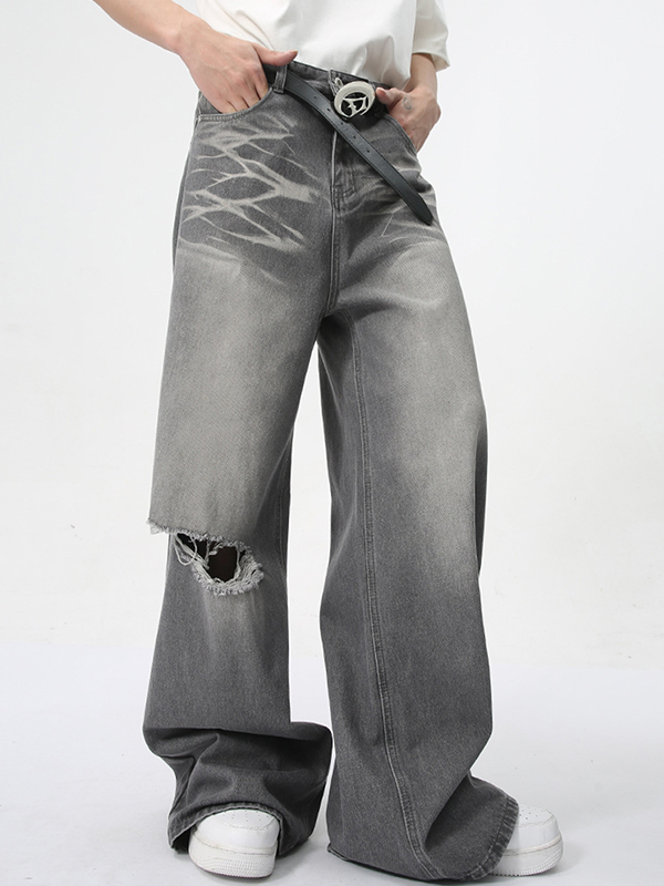 Washed Distressed Dangle Mopping Boyfriend Jeans