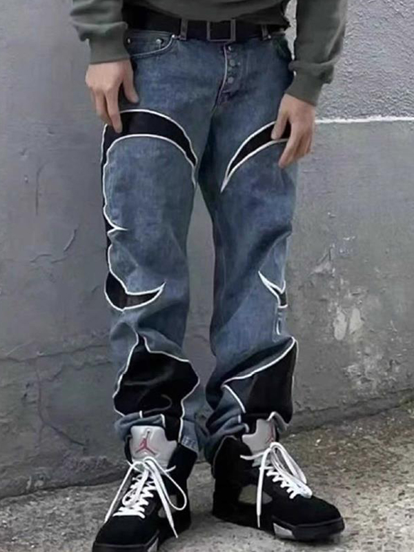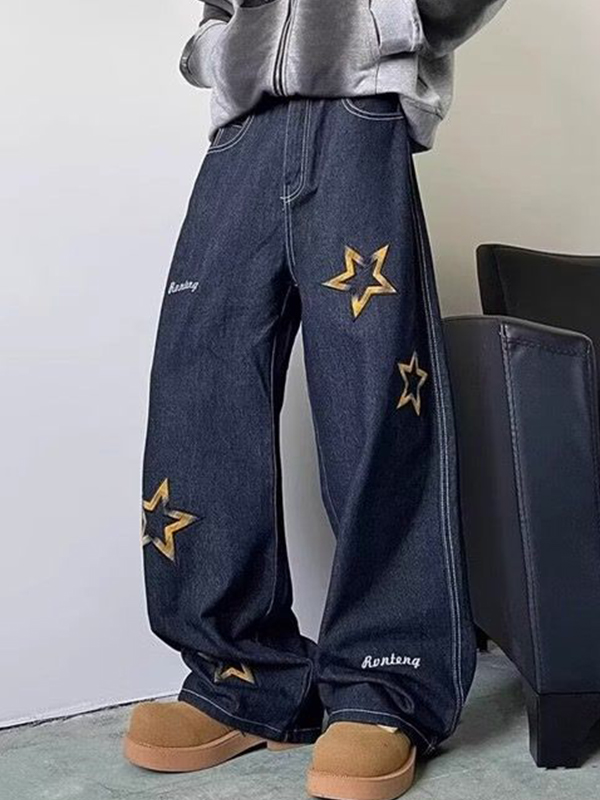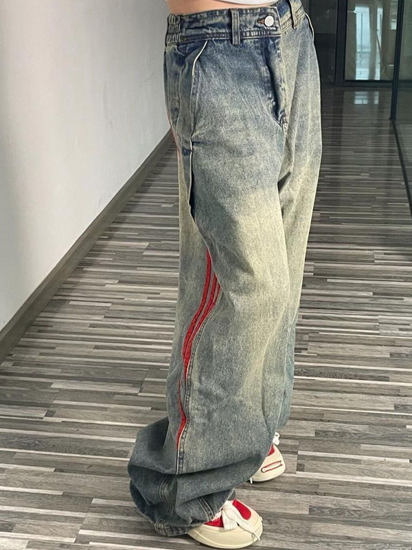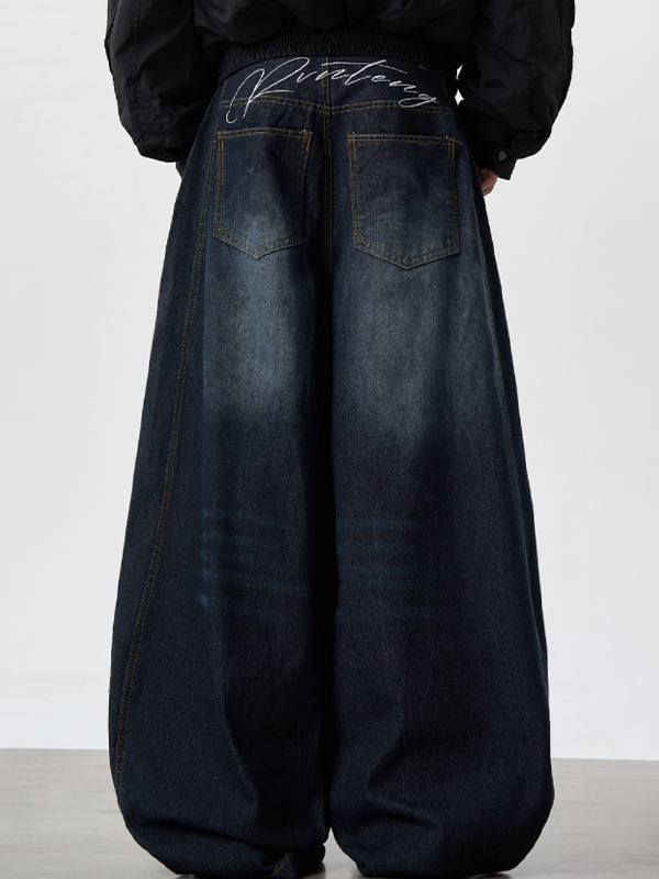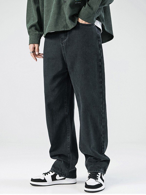 Men’s Vintage Wash Zipper Decor Loose Jeans