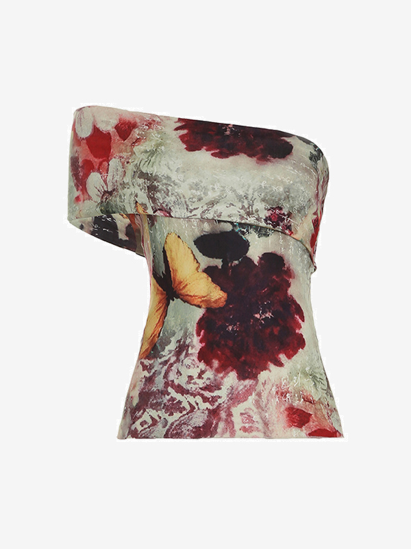 One Shoulder Vintage Print Tank Top