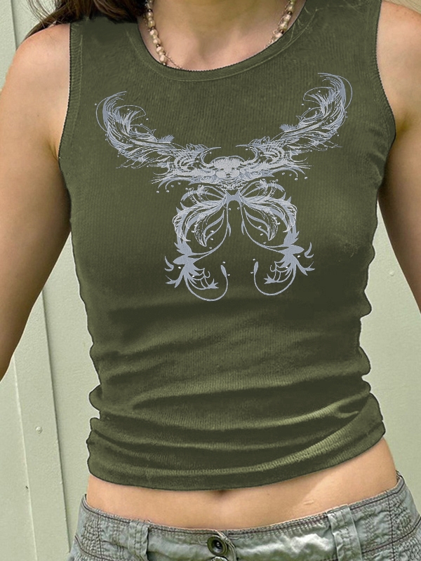 Vintage Butterfly Print Ribbed Tank Top