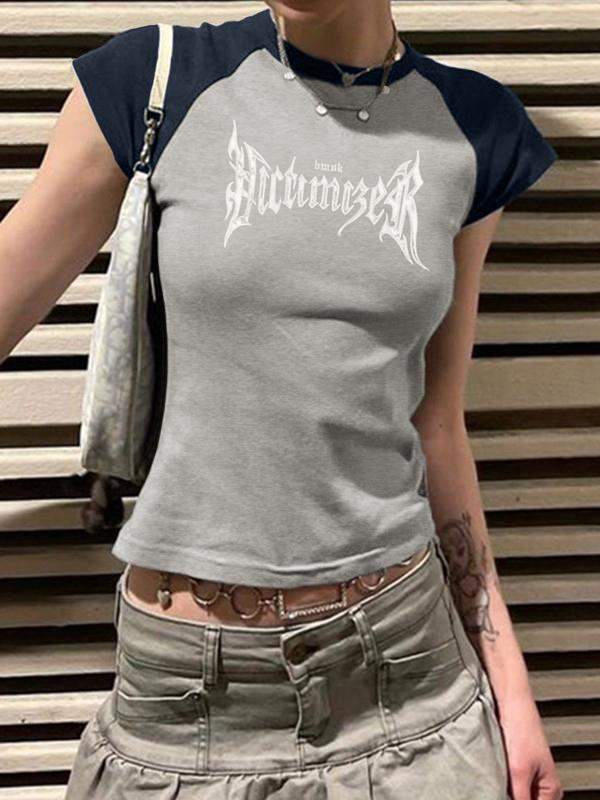 Lettering Raglan Sleeve Print Short Sleeve Tee
