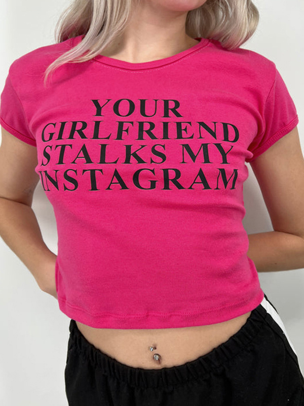 Letter Print Crew Neck Cropped Short Sleeve Tee
