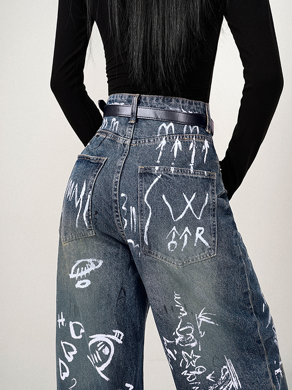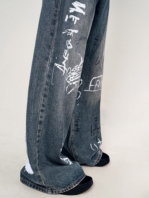 Unique Design: The jeans feature a distressed design that gives it a vintage and streetStyle look, while the graffiti print adds an interesting and eye catching element.
