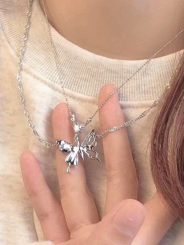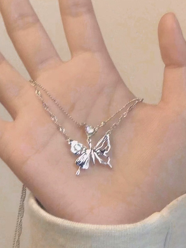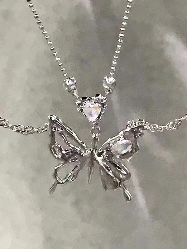 Be the first to review “Double Layered Rhinestone Butterfly Pendant Necklace”