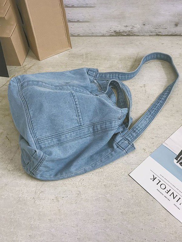 Large Washed Denim Tote Bag