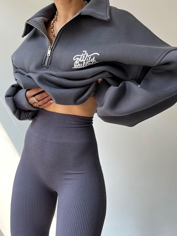 Be the first to review “Letter Print Half Zip Sweatshirt”