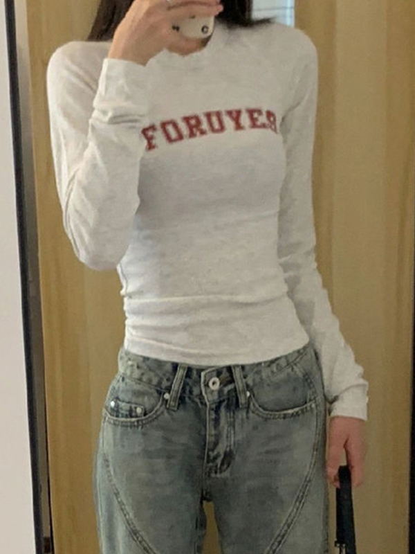 Versatile Design: Featuring a vintage letter print, this top adds a touch of retro charm to your outfit.