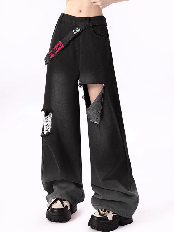 Loose Casual Straight Fit Ripped Jeans
