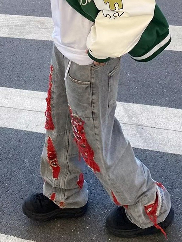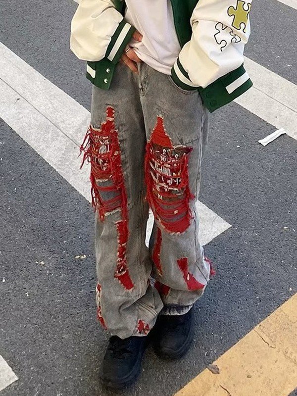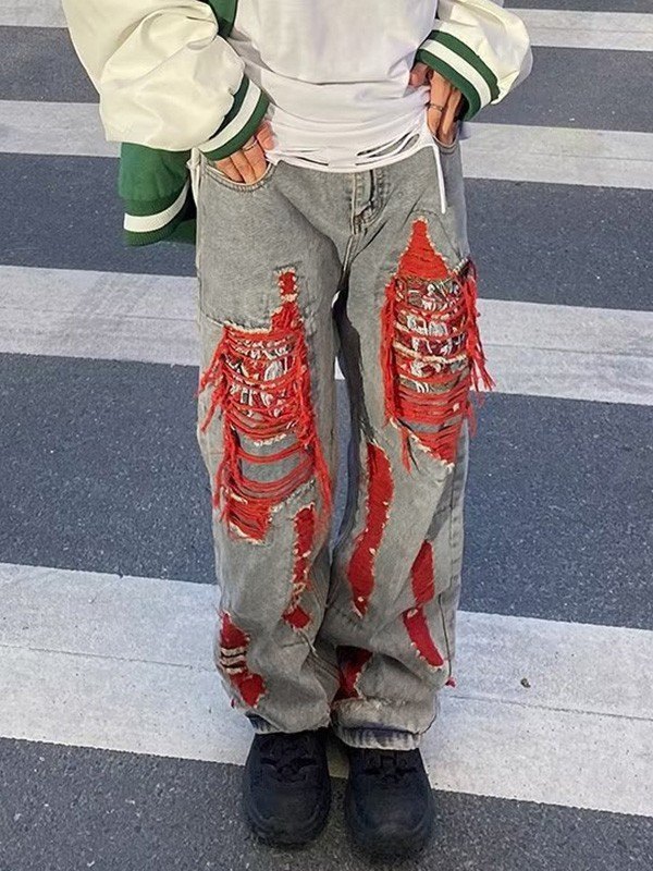 Design: These vintage-inspired distressed jeans shaped to a wide-leg fit, features contrast frayed rips detailing and functional pockets design, ended with a zip button fasten at front.