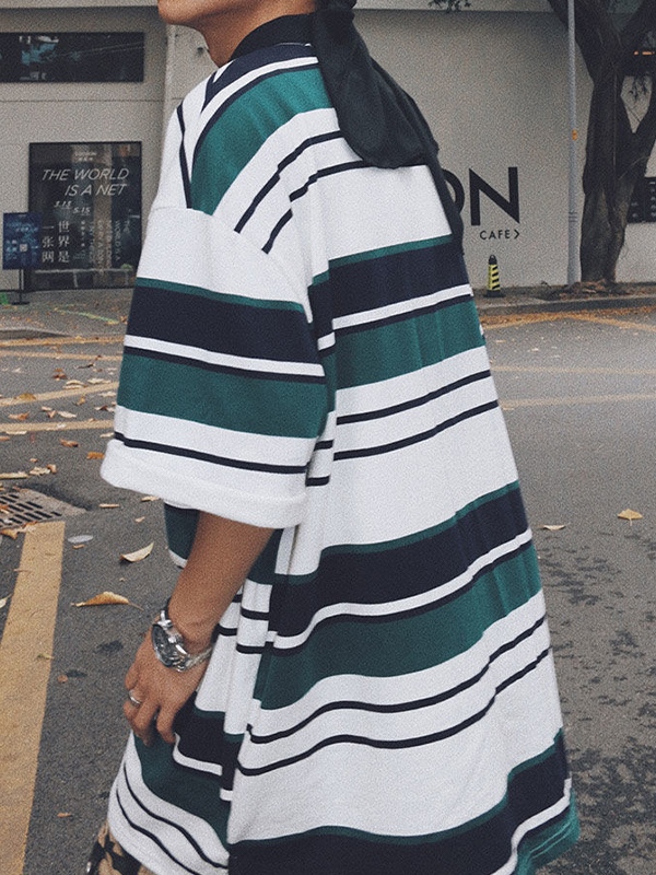 Unique Design: The lapel neck and short sleeve design, combined with the classic striped print and delicate embroidery, give this tee a unique and stylish look.