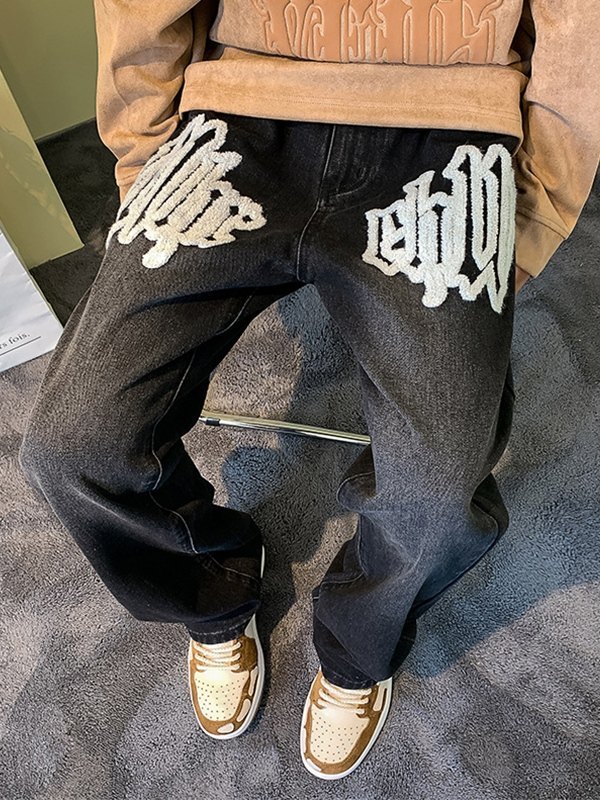 Description: It has fuzzy letter motif on the front leg, features multi pockets design, and with a metal zip button detailing.