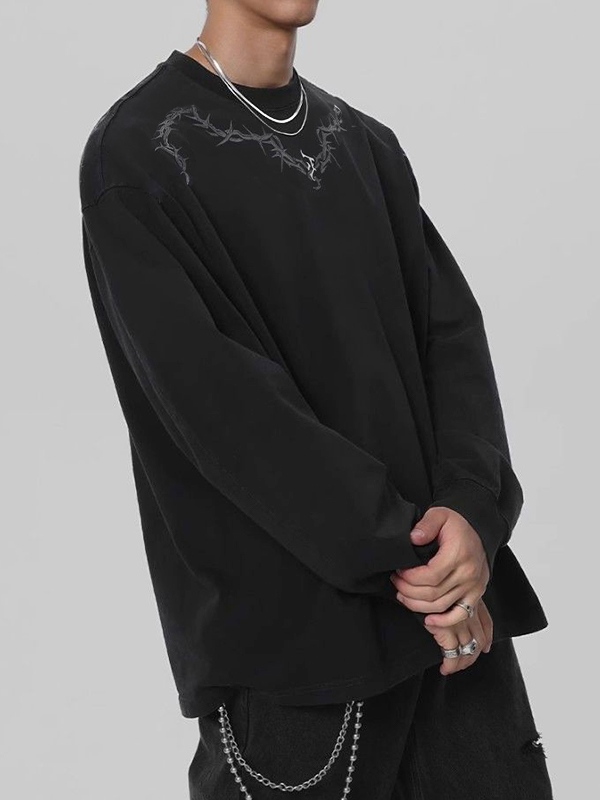 Unique Design: The washed black design and thorn print give this sweatshirt a cool and hip pop look that stands out from other sweatshirts.
