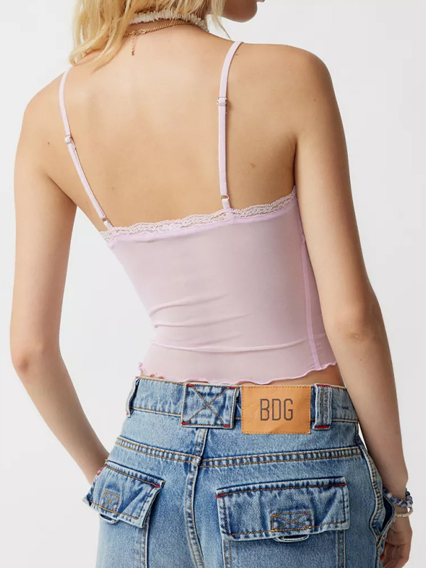 Plain Mesh V Neck Slim Fit Cami Top
