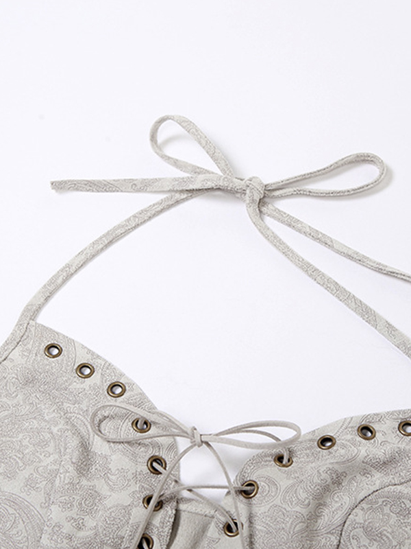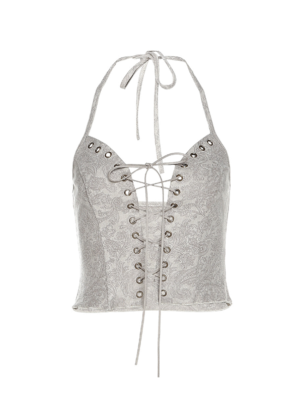 Style: Casual/Street/Vintage/Hip Pop/SexyFabric Content: PolyesterFit Type: Slim FitNeckline: Halter NeckSleeve Length: SleevelessUnique Print: The cami top features a delicate print, adding a beautiful and unique touch to your outfit.Adjustable Crossover Tie Up: The crossover tie up is not just decorative, it’s also adjustable, allowing you to achieve the perfect fit and adding a stylish flair.VersatileStyle: This top's casual, street, vintage, hip pop, and sexyStyle makes it suitable for various occasions, whether it's a music festival, a casual day out, or a night out.Slim Fit: The slim fit design of this cami top accentuates your body shape, making you look more attractive and fashionable.