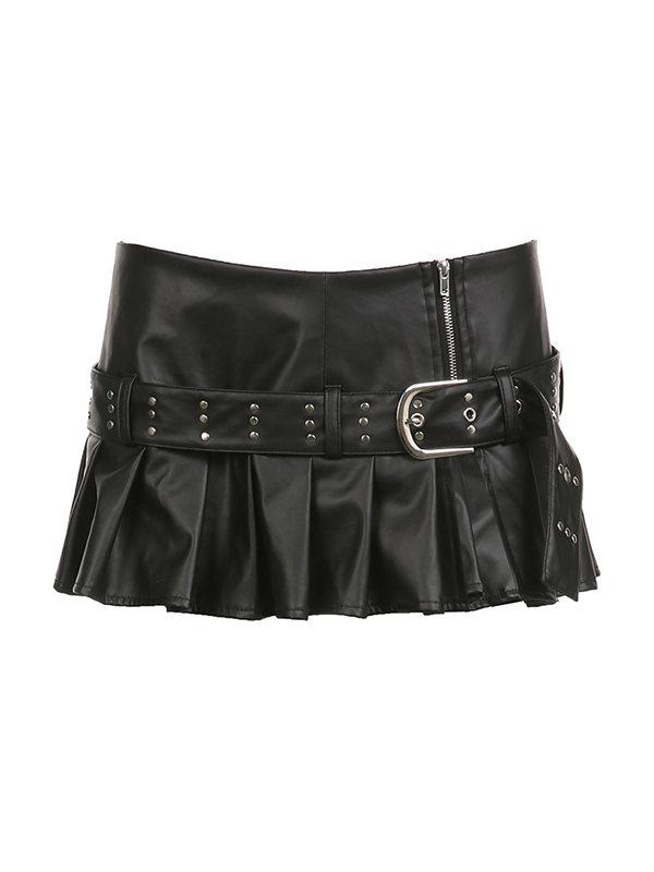 Punk and VintageStyle: The skirt features a rivet decor belted design, giving it a punk and vintage vibe that is perfect for those who love edgy and unique fashion.