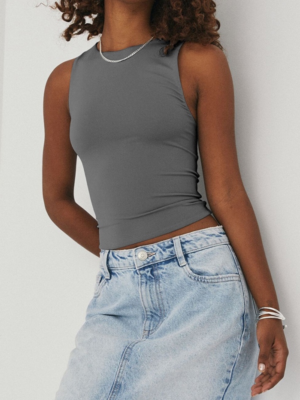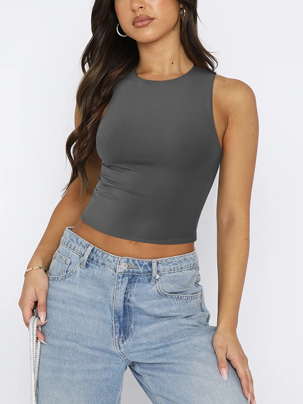 Be the first to review “Solid Crew Neck Cropped Tank Top”