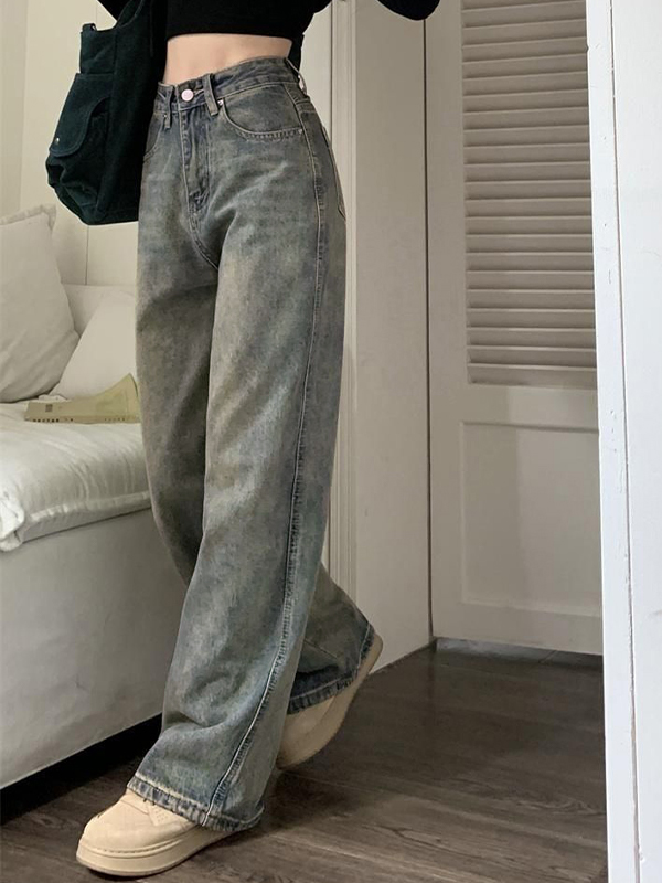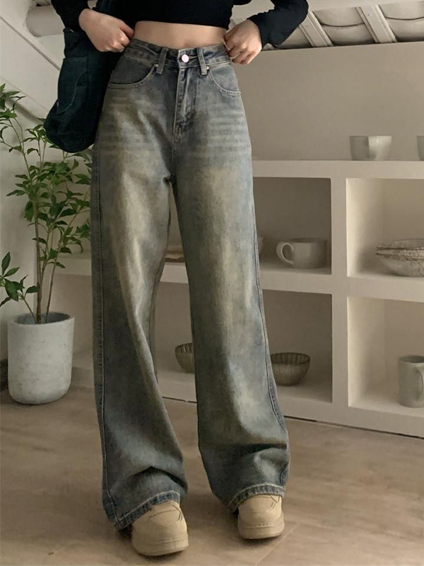 Vintage Design: The jeans feature a washed and distressed design that exudes a classic and vintage vibe, perfect for those who love retro fashion.