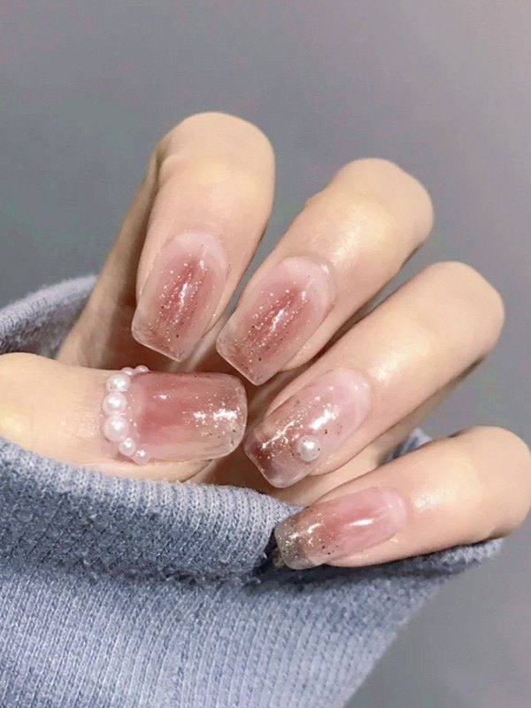 24pcs Faux Pearl Decor Pink Press On Nails