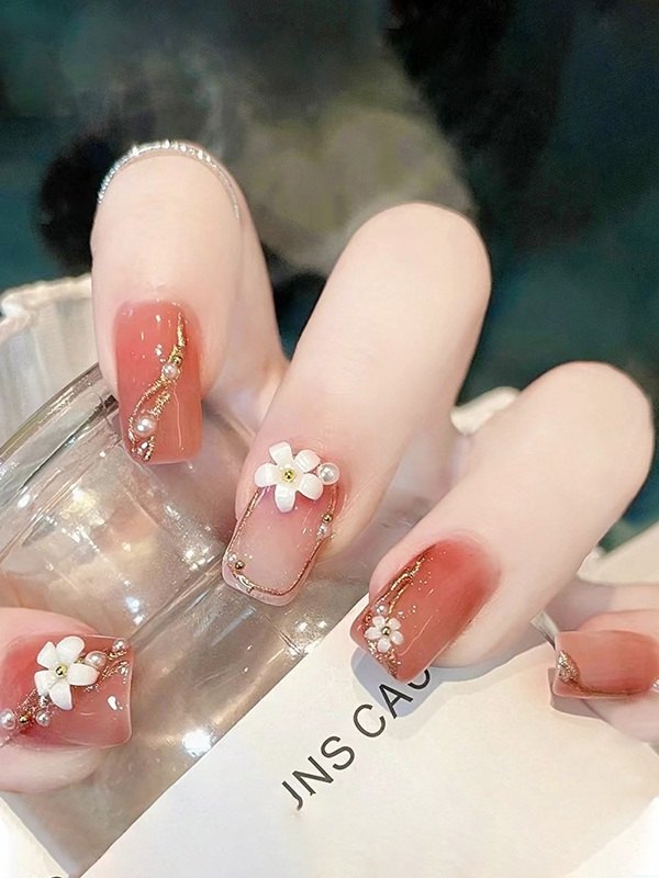 24pcs Faux Pearl Floral Press On Nails