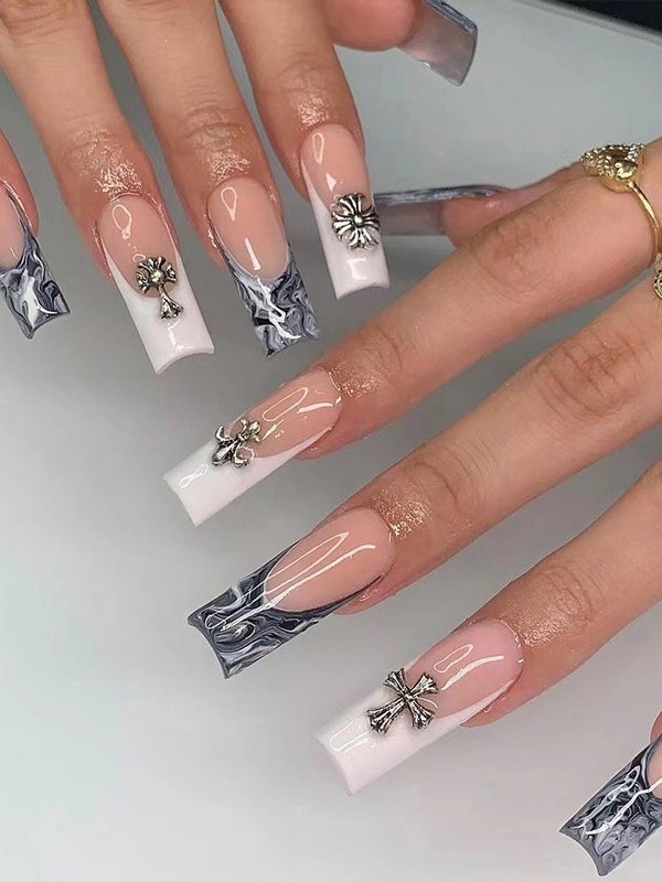 24pcs Cross Embellish Long Press On Nails