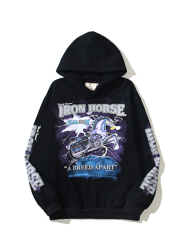 Men’s Motorcycle Plush Print Oversized Long Sleeve Hoodie