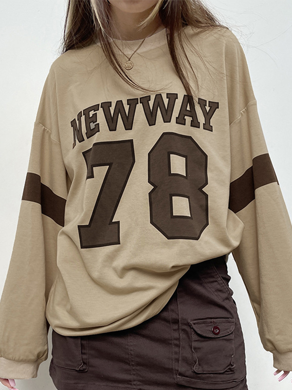 Loose Round Neck With Numbers Letters Printed Sweatshirts