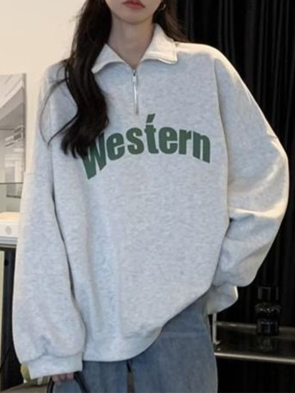 Letter Print Half Zip Sweatshirt