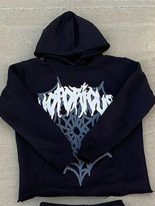 Contrast Color Spider Print Oversized Hoodie