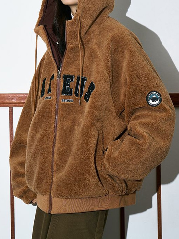 Reversible Lambswool Hooded Drawstring Embroidered Jacket