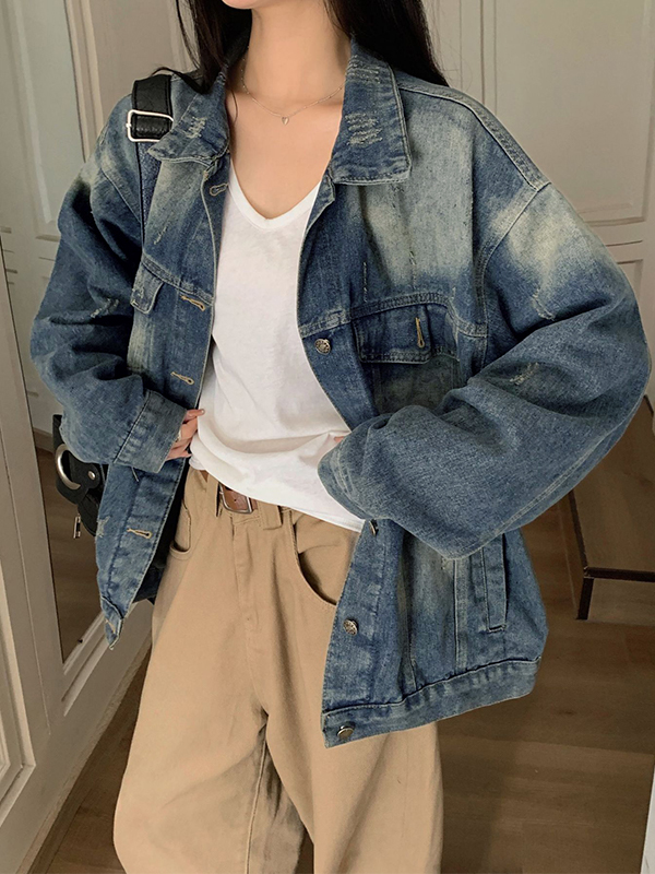 Vintage Wash Distressed Denim Jacket