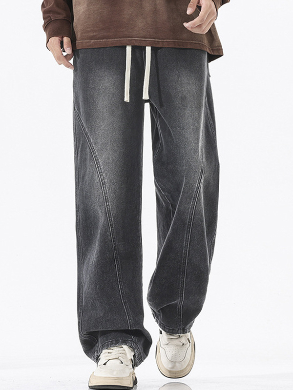 Men’s Contrast Patch Ripped Side Zip Up Straight Leg Pants