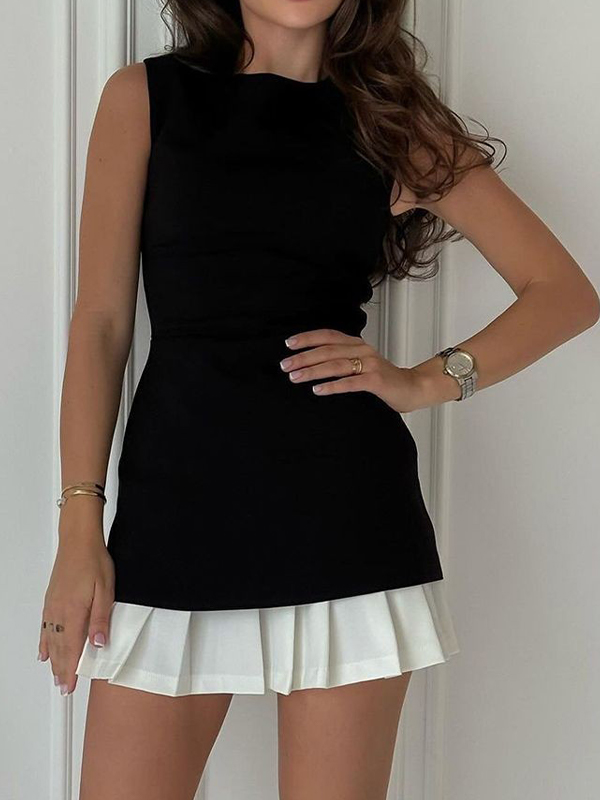 Paneled Ruffled Hem Sleeveless Mini Dress