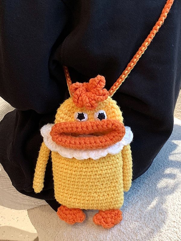 Hand Made Crochet Knit Cartoon Phone Crossbody Bag